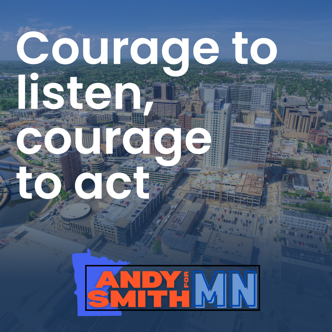 Andy Smith and his wife Anna are local small business owners in Rochester, MN. Over time, Andy got to know the community and the issues that impact them the most. This inspired him to run for the Minnesota House of Representatives in 2022.